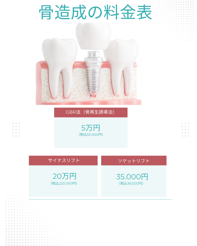 インプラント骨造成は多くの場合自由診療となり、インプラント費用とは別に追加費用が発生します。